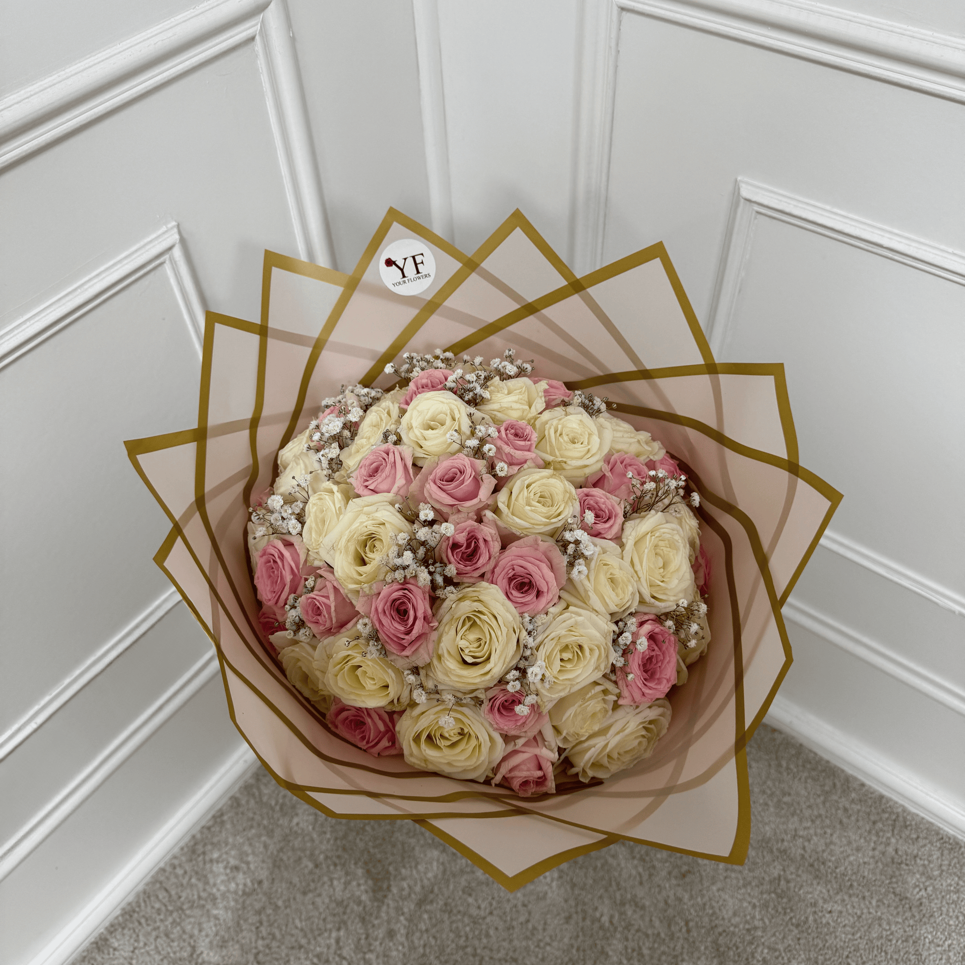 Le Bouquet Ambre est une composition florale délicate mêlant roses blanches et roses, symbole de pureté et de tendresse. Disponible entre 20 et 50 tiges, ce bouquet convient aussi bien pour une déclaration, une cérémonie ou un moment tout en douceur.